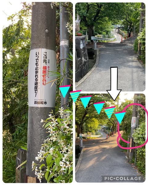 7月23日(水)こんばんは よしだ涼子 です 清滝新町と清滝中町の境にある見通しの悪い危険箇所へ「注意」の路面標示が新設されました✨市民の方から、急なカーブで見通しが悪く事故も多く安全対策をとのお声を…