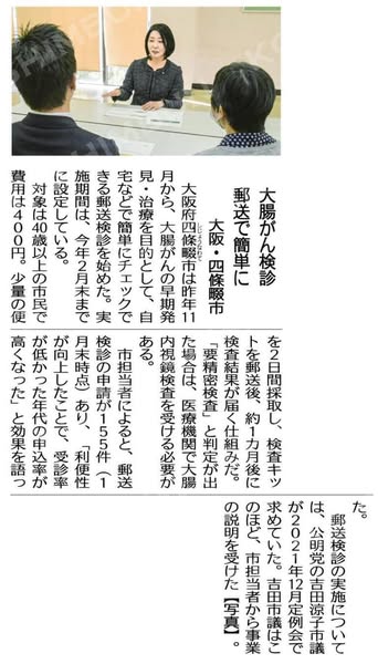 2月14日(金)おはようございます よしだ涼子 です 今日は、朝から嬉しいことが❣️1つ目は、今日の公明新聞に #大腸がん検診 の郵送検診の実績を掲載していただきました。唯一、自分で摂取することができ…