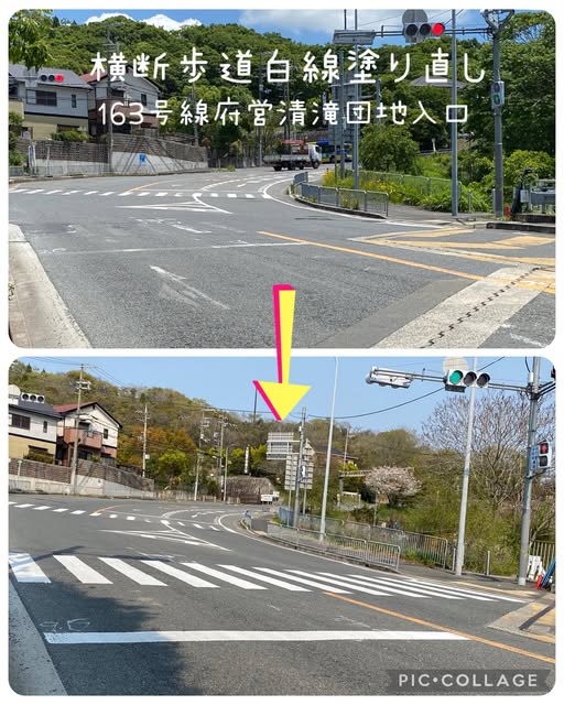 4月16日(水)こんばんは よしだ涼子 です 昨年、#四條畷警察署 へ要望していた横断歩道の塗り直しが完了し現場確認へ。163号線府営清滝団地入口の三叉路。ほとんど消えていた横断歩道がキレイに塗り直し…
