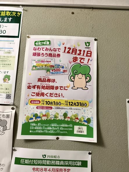「なわてみんなで頑張ろう商品券」の期限が今月末となりましたが、受け取っておられない方もおられます。周知のポスターを‼️との質問を行い、早速、新たなチラシを掲示していただきました❣️