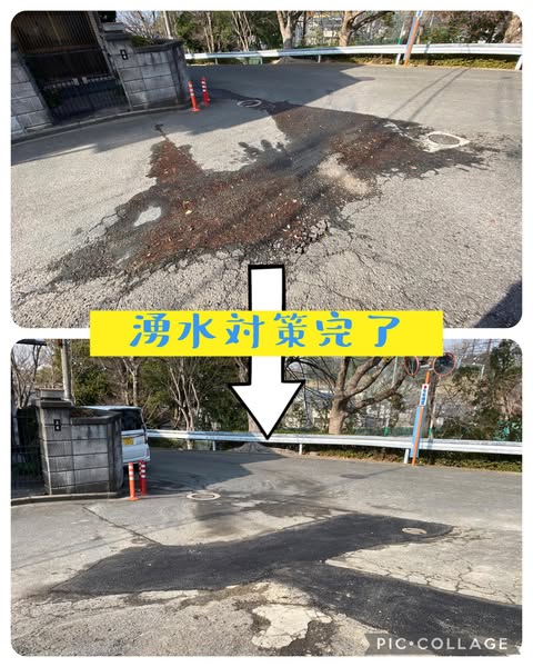 年末のご挨拶の時に道路からの湧水のご相談をいただきました。四條畷中学校南側の通学路でもある曲がり角。湧水が凍結している時もありスリップや転倒が心配⚠️